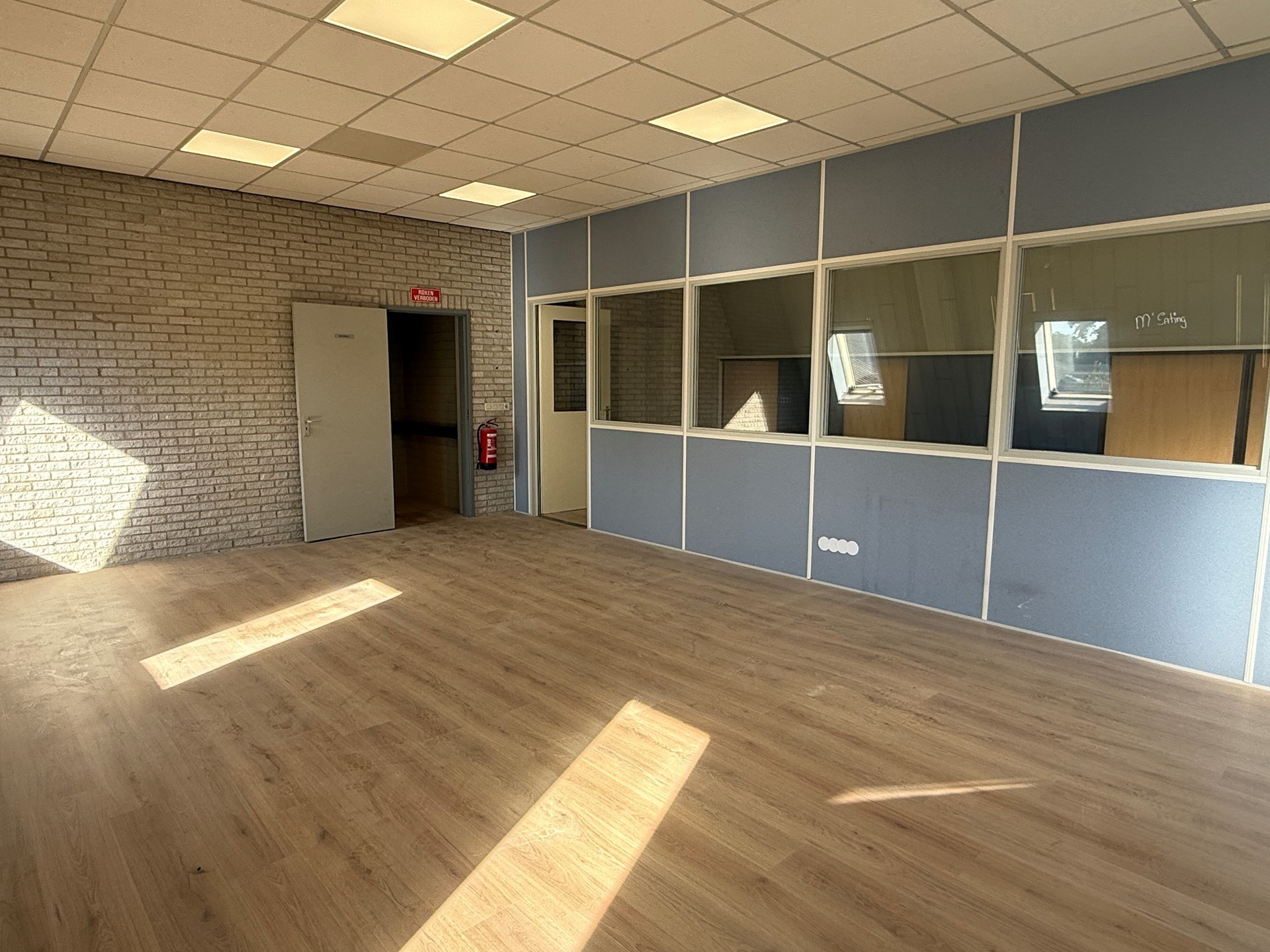 De bedrijfsruimte is aan de voorzijde voorzien van een loopdeur en een overheaddeur. Het kantoor op de eerste verdieping is voorzien van een PVC vloer en een systeemplafond met ledverlichting. De kozijnen zijn voorzien van dubbele beglazing.