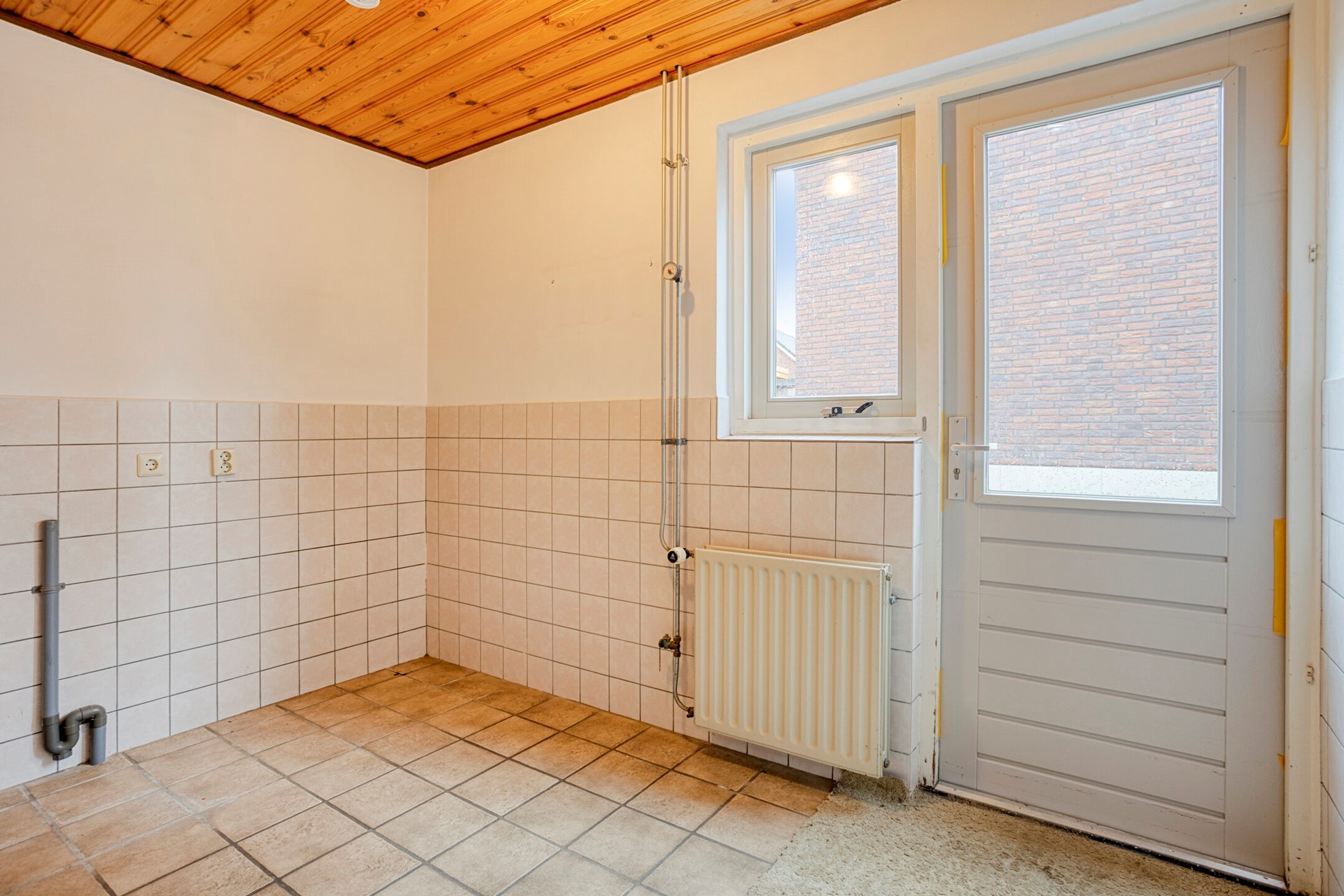 Via de recent aangelegde oprit wordt de woning aan de zijgevel betreden middels de hal, waar zich de meterkast (5 groepen, 2 aardlekschakelaars), de garderobe en de trapopgang naar de 1e verdieping bevinden. De hal is afgewerkt met een tegelvloer, schoonmetselwerk wanden en een schrootjesplafond. Vanuit de hal is de woonkamer bereikbaar, die met zo’n 28m² heerlijk ruim van opzet is. De grote raampartij geeft een mooi uitzicht op de Meester van Coothstraat. De woonkamer is afgewerkt met een tapijtvloer, schoonmetselwerk/behangen wanden en een MDF-plafond. De aansluitende eenvoudige maar functionele half open keuken is voorzien van diverse kast- en laderuimte, een L-vormig keukenblok en enkele keukenapparatuur zoals een 4-pits gaskookplaat, afzuigkap en koelkast. Vanuit de keuken kom je in de bijkeuken, die veel bergmogelijkheden biedt en waar tevens de witgoedaansluiting zit. Via een loopdeur is de achtertuin bereikbaar, maar ook zijn de geheelde betegelde badkamer en slaapkamer vanuit hier bereikbaar. De badkamer is ingericht met een inloopdouche, wandcloset en vaste wastafel. De slaapkamer heeft een oppervlakte van ca. 12,5m², is op de rustige achterzijde van de woning georiënteerd en afgewerkt met een tapijtvloer, schoonmetselwerk/behangen wanden en schrootjesplafond. Een grote raampartij zorgt er voor prettige daglichttoetreding.