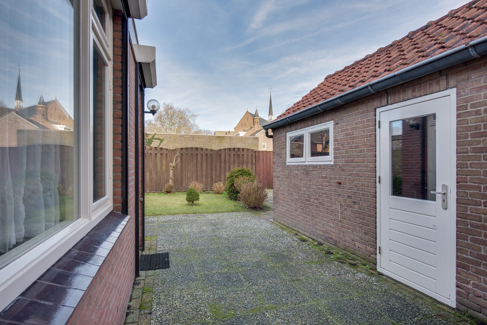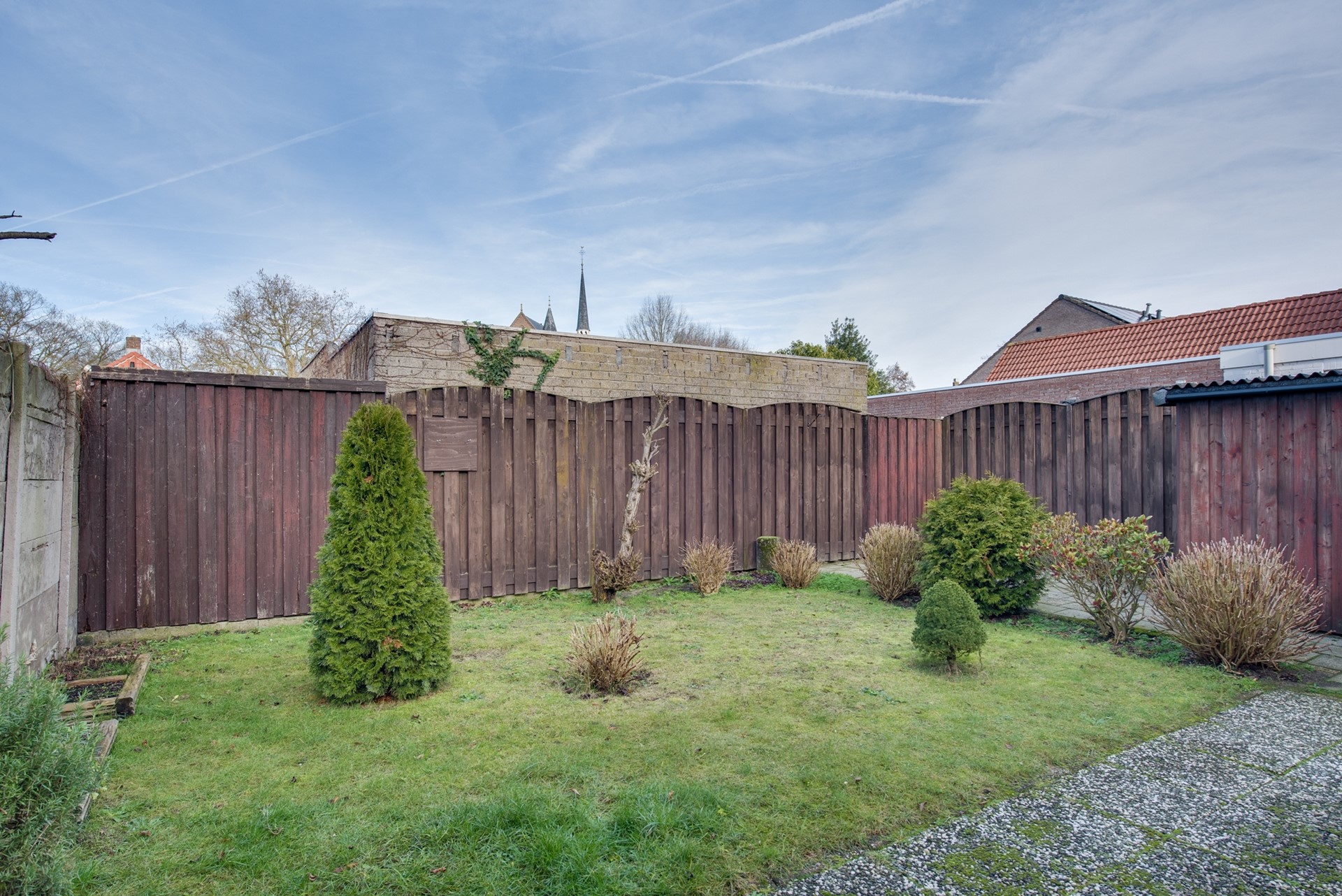 De achtertuin is zowel via de oprit (poort), de woonkamer (dubbele tuindeuren) als bijkeuken/droogloop (loopdeur) bereikbaar.