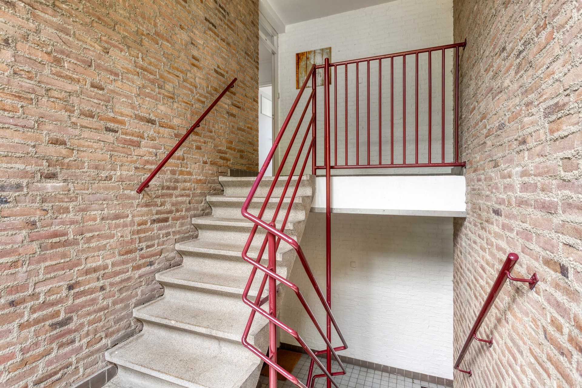 Bij de parkeerhavens die zich aan de voorzijde van het appartementengebouw bevinden staat ook een openbare laadpaal voor elektrische auto’s opgesteld.
