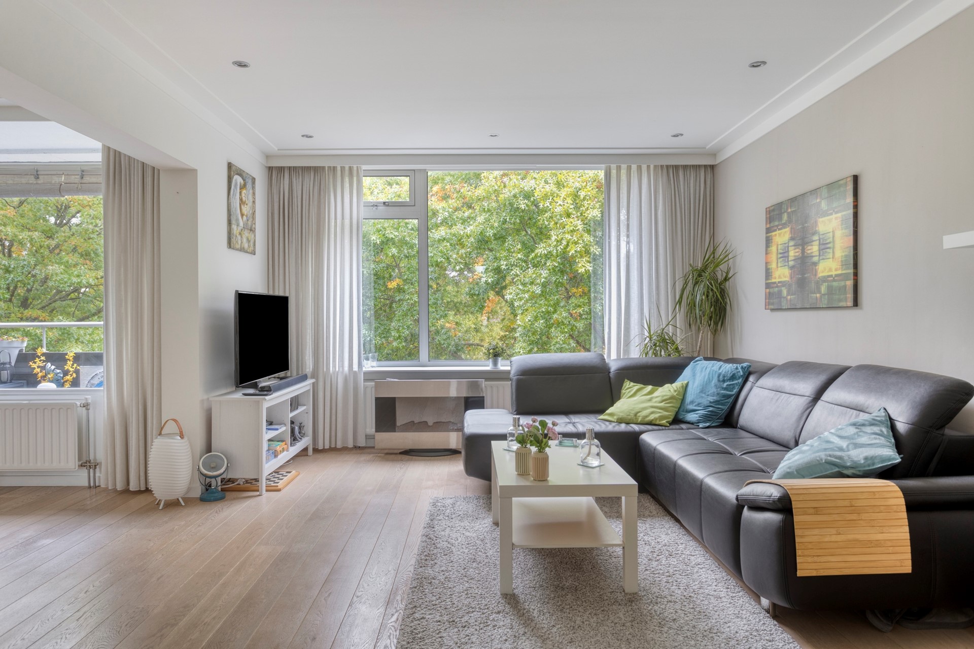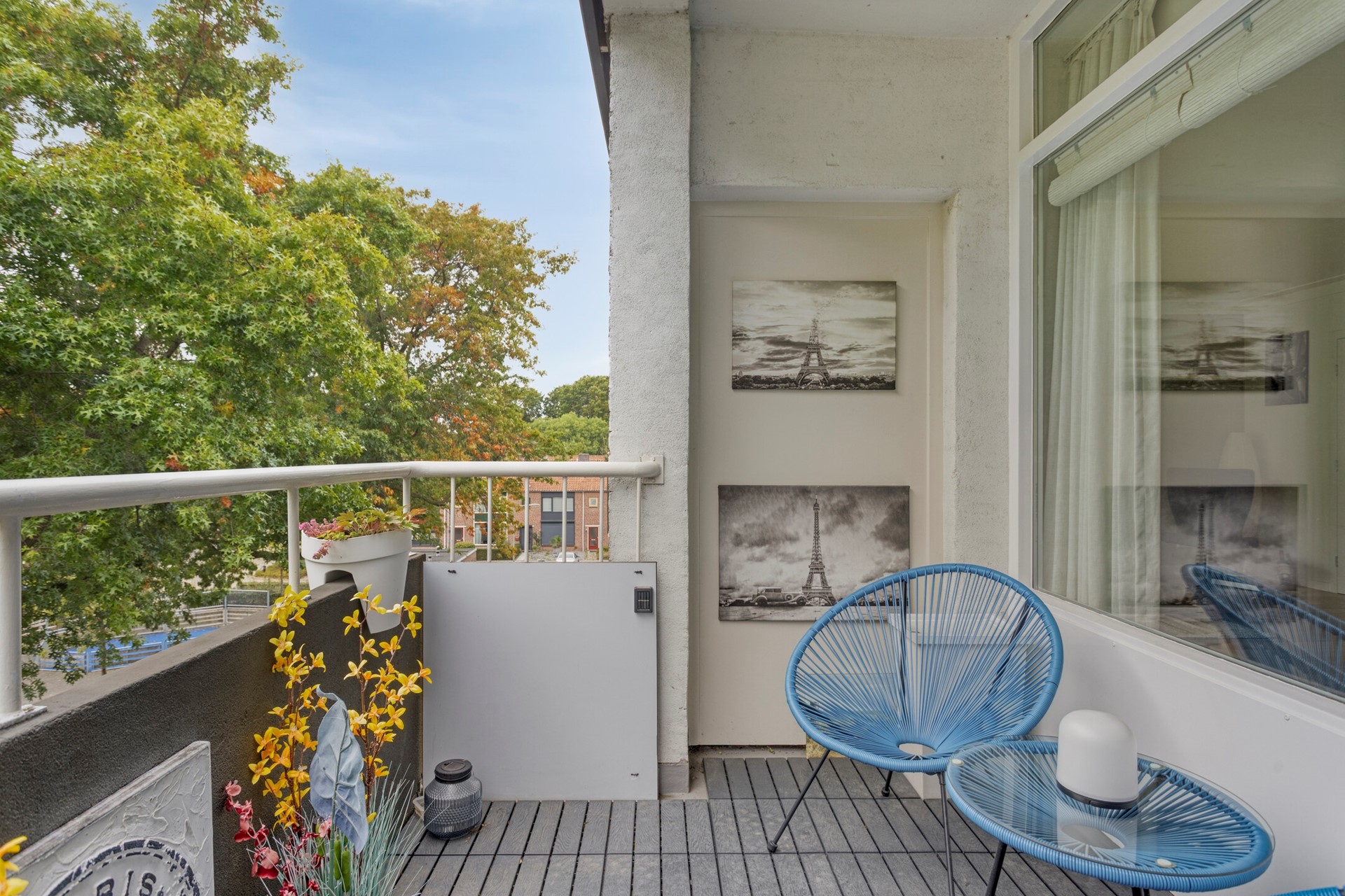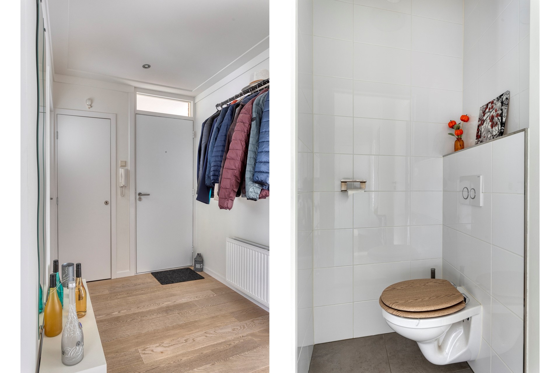 Het appartementengebouw wordt betreden via een centrale hal met intercom, waar zich tevens de brievenbussen, het trappenhuis en de toegang tot de individuele bergingen bevinden. Middels de trapopgang bereikt men de 3e woonlaag, waar het appartement via een ruime entree/hal betreden kan worden en die toegang biedt tot de geheel betegelde toiletruimte (inclusief wandcloset), de gemoderniseerde meterkast, het zitgedeelte van de woonkamer, de eethoek, de keuken en slaapkamer 1. De entree/hal is licht en strak ingericht met een warme vloer (houtlook), hogere plinten, kwaliteits binnendeuren, strak gestucte wanden (afgewerkt met trimetal kwaliteitsverf) en een strak gestuct plafond met fraaie sierlijsten en sfeervolle inbouwspots. Ook de woonkamer -met een ruim zitgedeelte (inclusief praktische vaste kast) en comfortabele eethoek- is op dezelfde keurige wijze afgewerkt als de entree/hal en met een oppervlakte van bijna 30m² heerlijk ruim van opzet. De grote raampartijen (allen voorzien van isolerende/HR++ beglazing) zorgen er voor veel daglichttoetreding, hetgeen van de gehele woonkamer een zeer aangename verblijfsruimte maakt. Vanuit de eethoek is het zonnige balkon van circa 6m² bereikbaar; heerlijk beschut gelegen (deels overdekt/inpandig) en met een groen, vrij uitzicht op het voor het appartementengebouw gelegen speelveld. De gesloten keuken is keurig afgewerkt met een tegelvloer, grotendeels betegelde/deels gestucte wanden en eveneens een licht gestuct plafond met sierlijsten en inbouwspots. Het keukenblok is naast de nodige kast- en laderuimte ingericht met diverse keukenapparatuur zoals een koelkast, oven, gaskookplaat en afzuigkap. De aansluitende, geheel betegelde badkamer is zeer netjes afgewerkt en voorzien van een inloopdouche, waste wastafel met meubel, handdoekradiator en mechanische ventilatie. Vanuit de keuken is nog een 2e balkon aan de achterzijde van het appartement bereikbaar. Deze is in het verleden slim deels bij de woonruimte getrokken, waardoor men daar nu (naast nog steeds een klein 2e balkonnetje) beschikt over een extra portaal/opslagruimte en waardoor de cv-kast (met opstelplaats van de Intergas hre combiketel 24-18 uit 2019) inpandig bereikbaar is geworden. Vanuit de woonkamer is de hoofdslaapkamer bereikbaar, die evenals slaapkamer 1 (waar zich ook witgoedaansluitingen bevinden) gelegen is aan de rustige achterzijde van het appartementengebouw. Met een oppervlakte van ca. 12m² (en twee praktische vaste kasten) en 9m² (met één praktische vaste kast) zijn dit prima formaat slaapkamers. Indien gewenst kan de 2e slaapkamer natuurlijk ook uitstekend dienst doen als bijvoorbeeld werk-, was- en/of bergkamer. De slaapkamers hebben hetzelfde keurige afwerkingsniveau als de andere vertrekken van het appartement en de aanwezige raampartijen zorgen ook hier voor extra aangename daglichttoetreding.