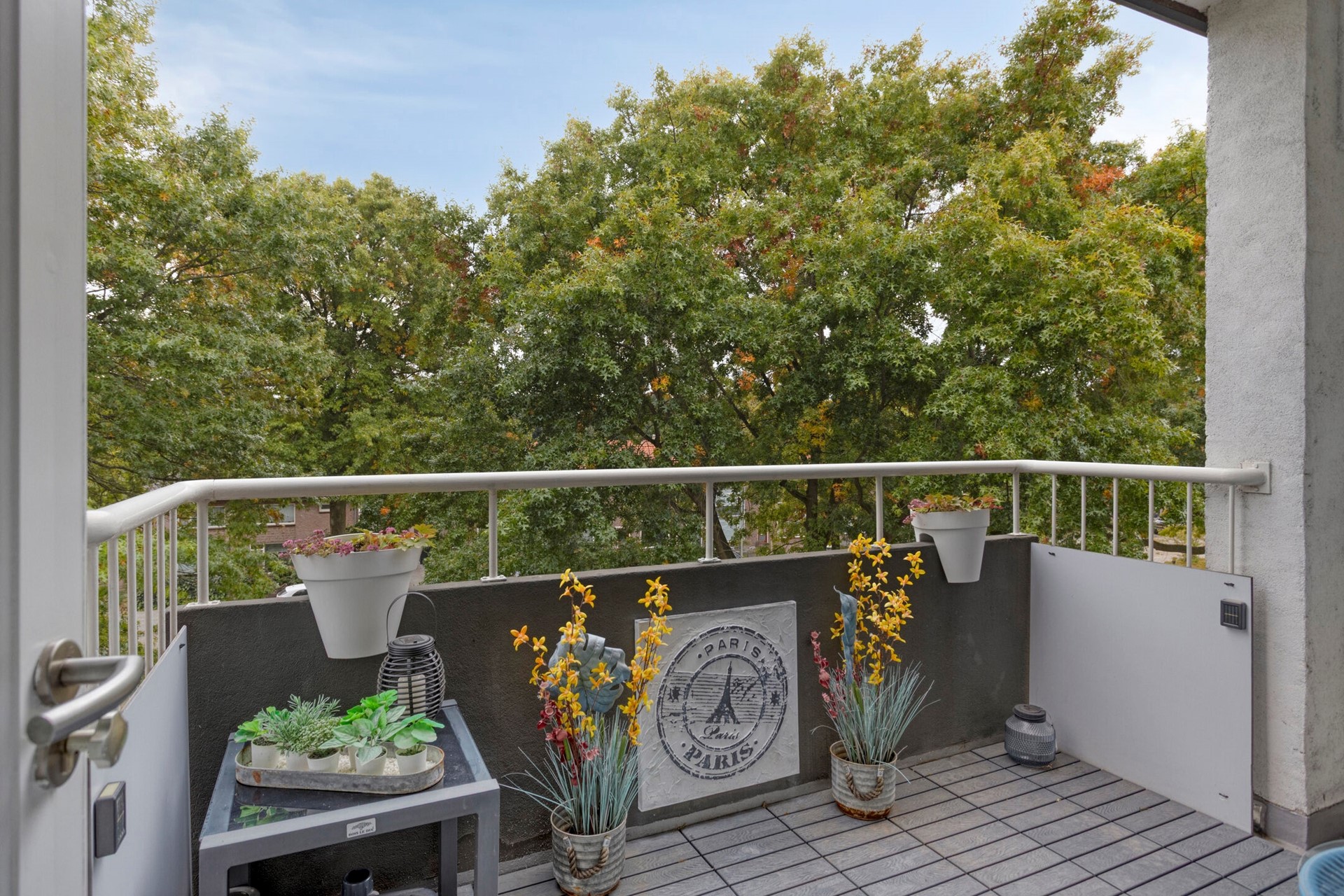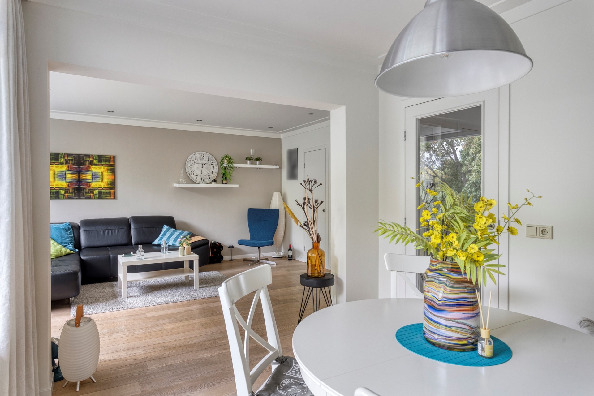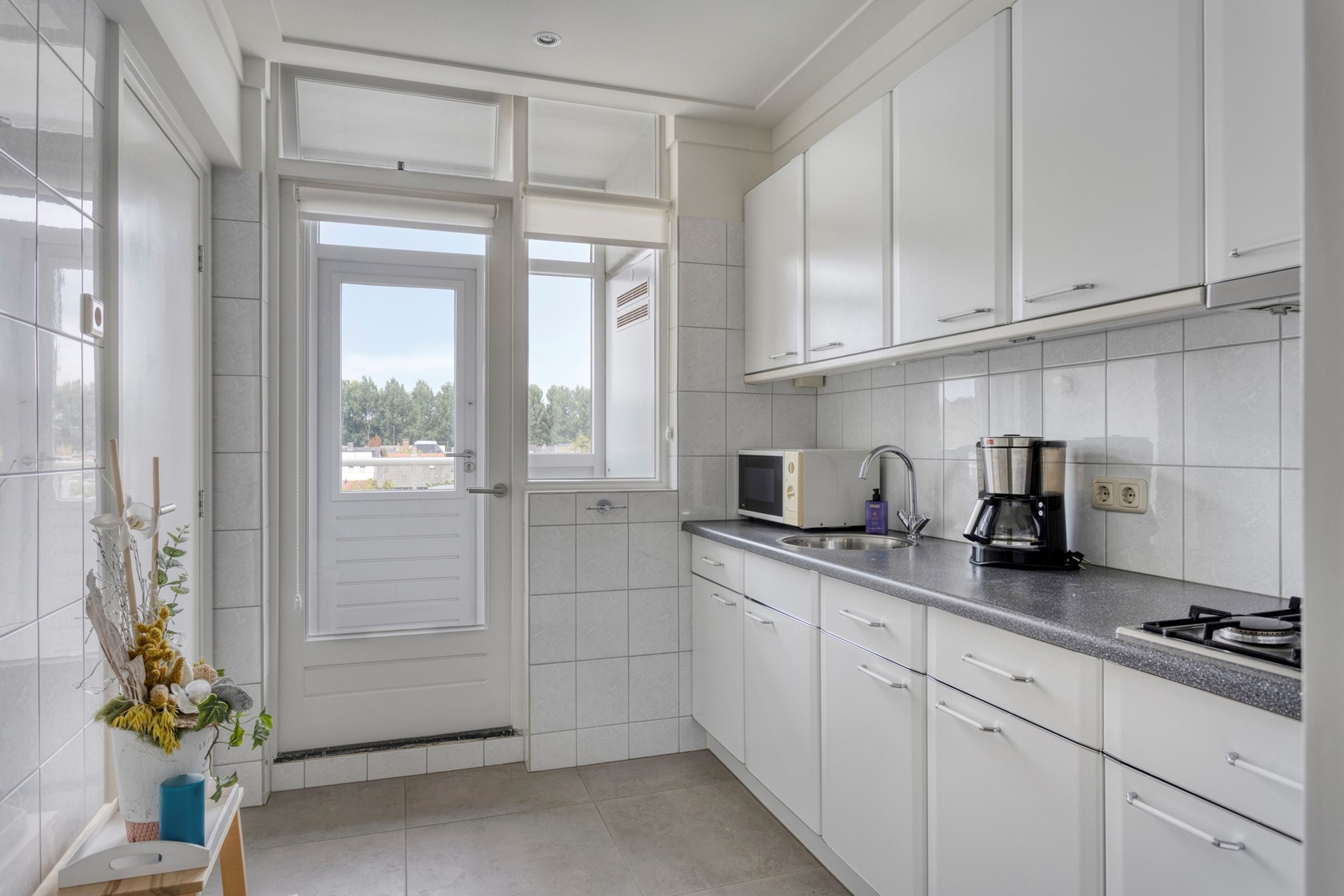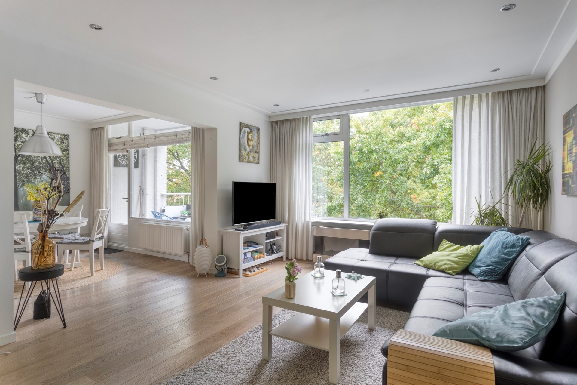 Het appartementengebouw wordt betreden via een centrale hal met intercom, waar zich tevens de brievenbussen, het trappenhuis en de toegang tot de individuele bergingen bevinden. Middels de trapopgang bereikt men de 3e woonlaag, waar het appartement via een ruime entree/hal betreden kan worden en die toegang biedt tot de geheel betegelde toiletruimte (inclusief wandcloset), de gemoderniseerde meterkast, het zitgedeelte van de woonkamer, de eethoek, de keuken en slaapkamer 1. De entree/hal is licht en strak ingericht met een warme vloer (houtlook), hogere plinten, kwaliteits binnendeuren, strak gestucte wanden (afgewerkt met trimetal kwaliteitsverf) en een strak gestuct plafond met fraaie sierlijsten en sfeervolle inbouwspots. Ook de woonkamer -met een ruim zitgedeelte (inclusief praktische vaste kast) en comfortabele eethoek- is op dezelfde keurige wijze afgewerkt als de entree/hal en met een oppervlakte van bijna 30m² heerlijk ruim van opzet. De grote raampartijen (allen voorzien van isolerende/HR++ beglazing) zorgen er voor veel daglichttoetreding, hetgeen van de gehele woonkamer een zeer aangename verblijfsruimte maakt. Vanuit de eethoek is het zonnige balkon van circa 6m² bereikbaar; heerlijk beschut gelegen (deels overdekt/inpandig) en met een groen, vrij uitzicht op het voor het appartementengebouw gelegen speelveld. De gesloten keuken is keurig afgewerkt met een tegelvloer, grotendeels betegelde/deels gestucte wanden en eveneens een licht gestuct plafond met sierlijsten en inbouwspots. Het keukenblok is naast de nodige kast- en laderuimte ingericht met diverse keukenapparatuur zoals een koelkast, oven, gaskookplaat en afzuigkap. De aansluitende, geheel betegelde badkamer is zeer netjes afgewerkt en voorzien van een inloopdouche, waste wastafel met meubel, handdoekradiator en mechanische ventilatie. Vanuit de keuken is nog een 2e balkon aan de achterzijde van het appartement bereikbaar. Deze is in het verleden slim deels bij de woonruimte getrokken, waardoor men daar nu (naast nog steeds een klein 2e balkonnetje) beschikt over een extra portaal/opslagruimte en waardoor de cv-kast (met opstelplaats van de Intergas hre combiketel 24-18 uit 2019) inpandig bereikbaar is geworden. Vanuit de woonkamer is de hoofdslaapkamer bereikbaar, die evenals slaapkamer 1 (waar zich ook witgoedaansluitingen bevinden) gelegen is aan de rustige achterzijde van het appartementengebouw. Met een oppervlakte van ca. 12m² (en twee praktische vaste kasten) en 9m² (met één praktische vaste kast) zijn dit prima formaat slaapkamers. Indien gewenst kan de 2e slaapkamer natuurlijk ook uitstekend dienst doen als bijvoorbeeld werk-, was- en/of bergkamer. De slaapkamers hebben hetzelfde keurige afwerkingsniveau als de andere vertrekken van het appartement en de aanwezige raampartijen zorgen ook hier voor extra aangename daglichttoetreding.