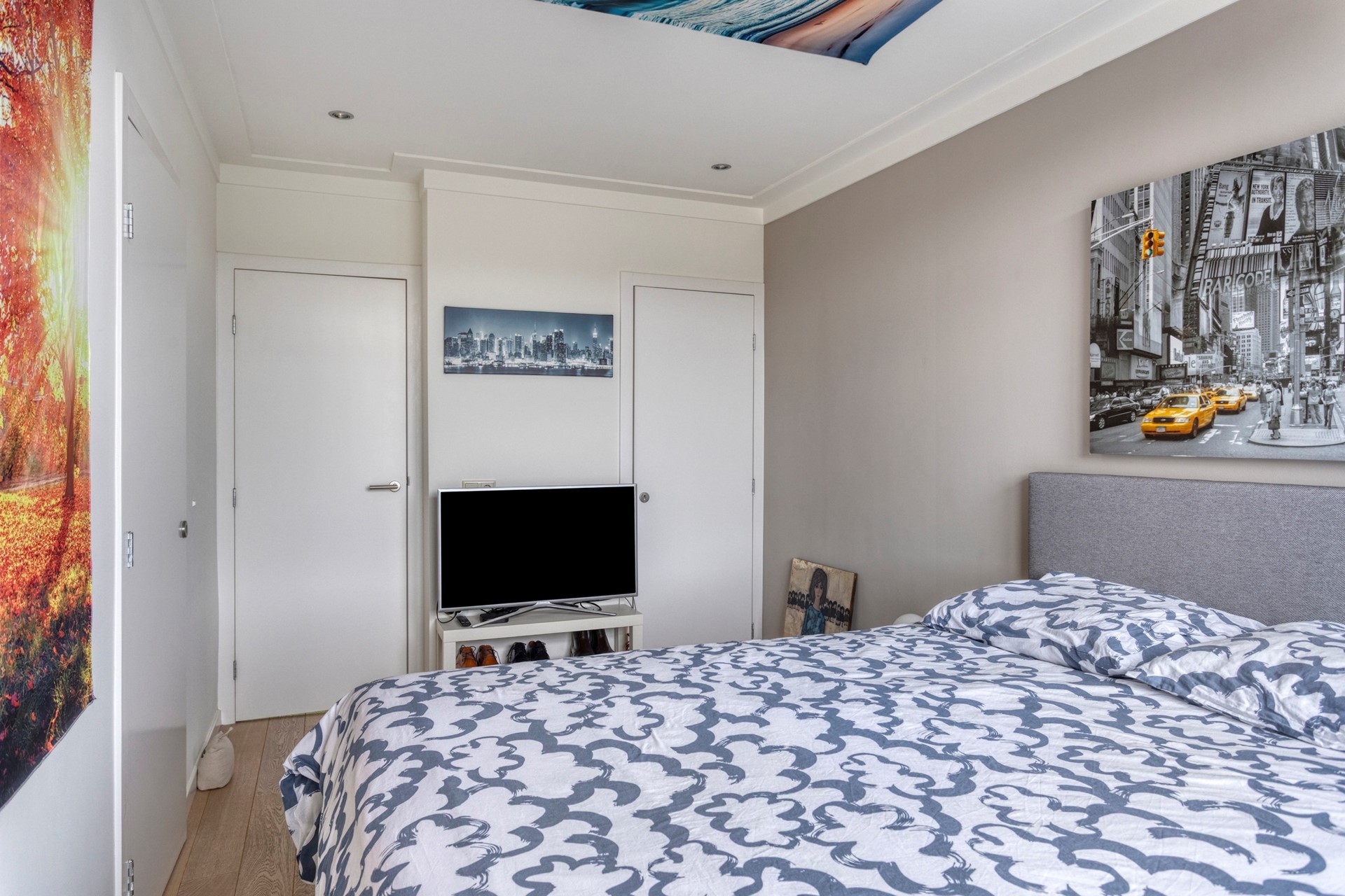 Zowel verschillende binnendeuren (zoals die van de twee slaapkamers, de badkamer en de meterkast) als de deuren van de vaste kasten binnen het appartement zijn extra dik en zijn -evenals de binnendeuren met glas- voorzien van een modern, uniform deurbeslag.