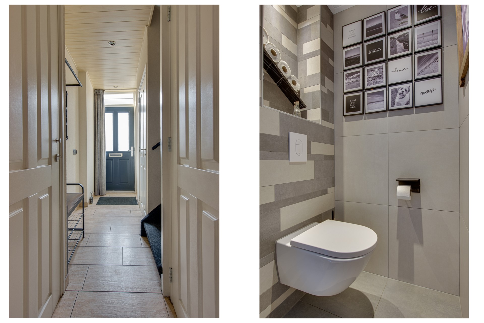Bij binnenkomst ervaar je direct de prettige sfeer van deze woning. De lichte en verzorgde hal is afgewerkt met een stijlvolle tegelvloer met vloerverwarming, strak gestucte wanden en beschikt over een praktische garderobehoek. Vanuit de hal zijn de meterkast, trapkast, de moderne toiletruimte en de woonkamer bereikbaar. Het toilet is uitgevoerd met een wandcloset en sluit perfect aan bij de eigentijdse uitstraling van de woning.