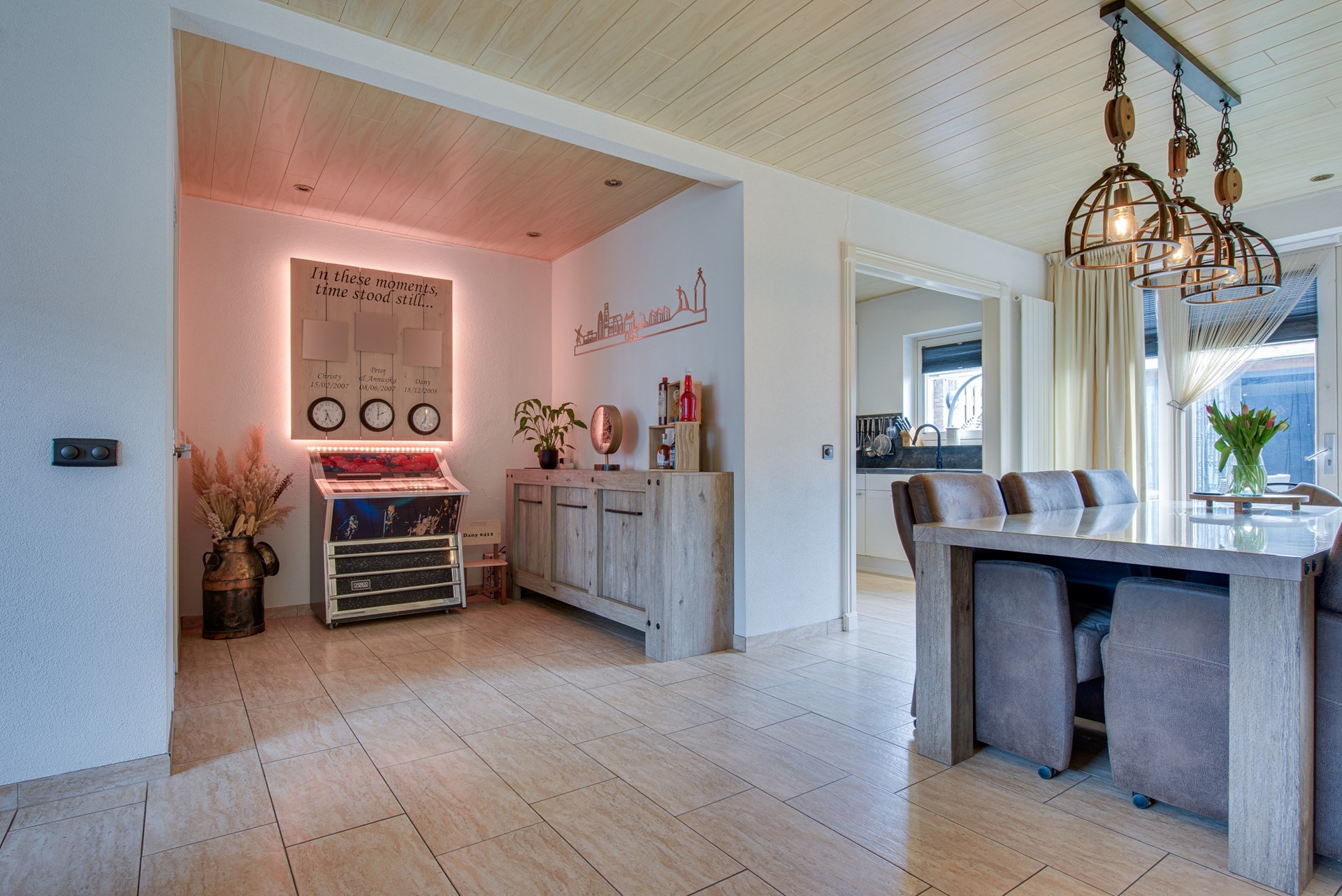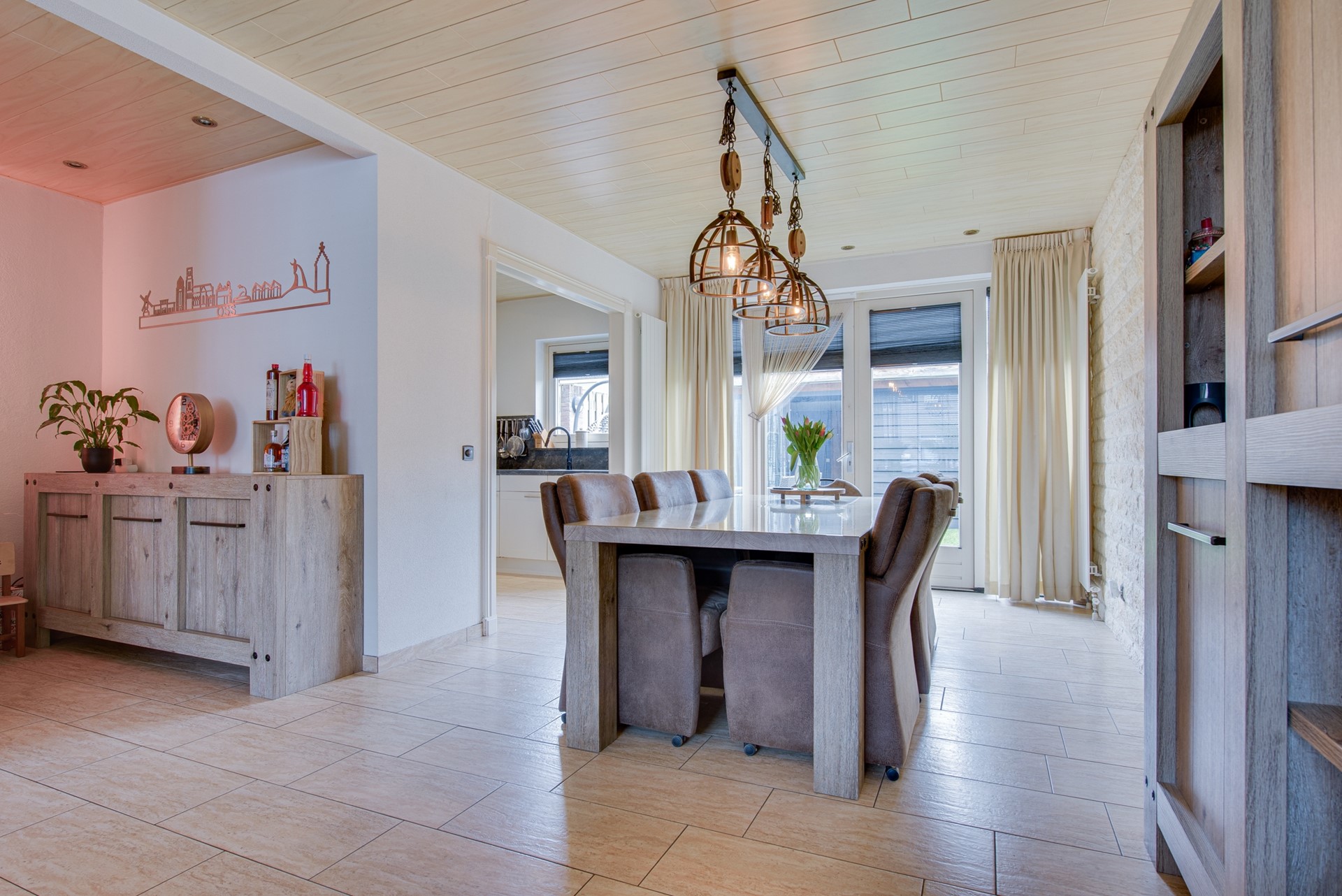 Bij binnenkomst voelt u direct de prettige sfeer. De lichte woonkamer nodigt uit om thuis te komen en heerlijk te ontspannen. Aan de achterzijde bevindt zich de stijlvolle uitgebouwde keuken, met volop ruimte voor een grote eettafel. Dit is zonder twijfel het warme hart van het huis: dé plek voor gezellige diners, lange avonden en waardevolle momenten met familie en vrienden.