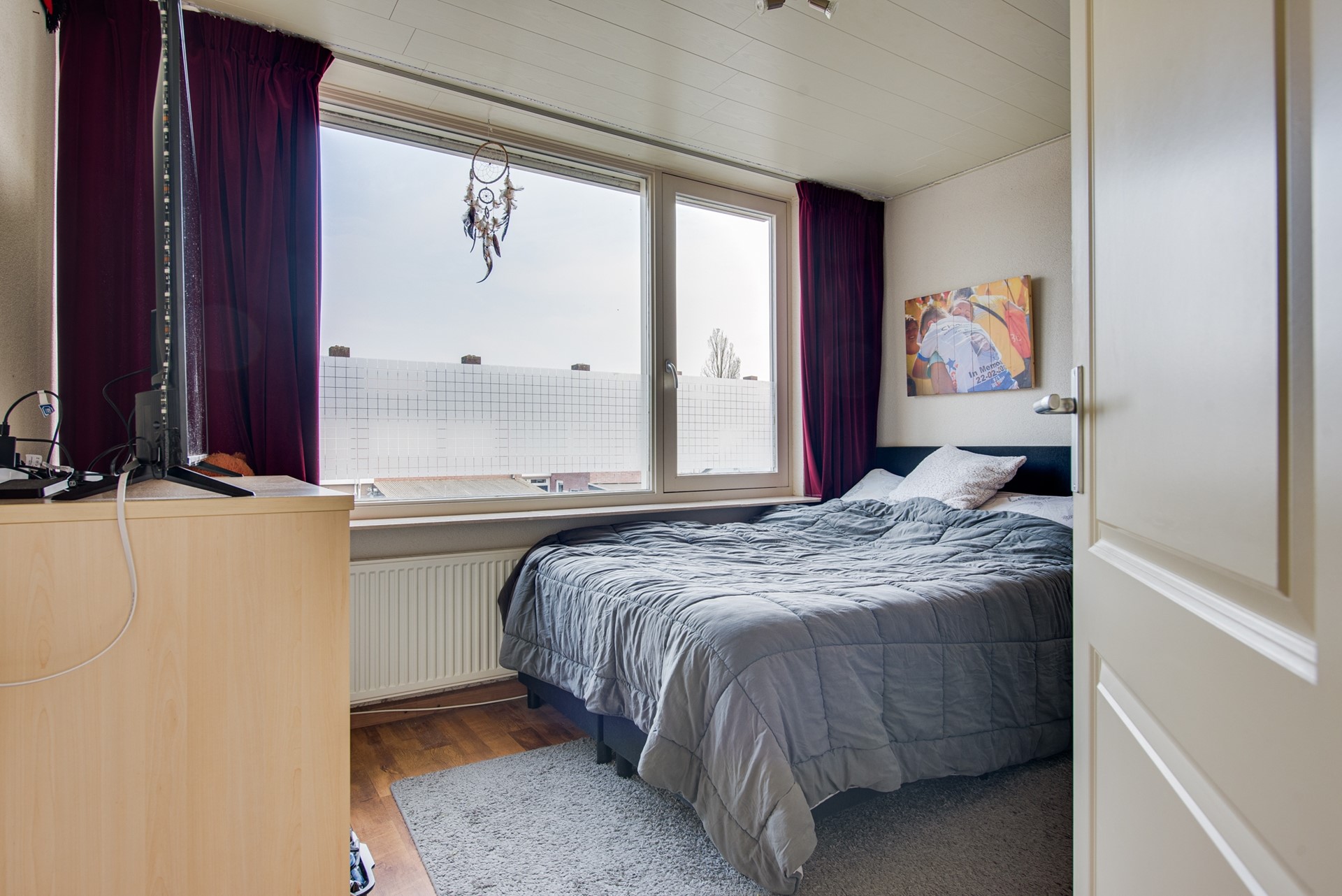 Via een vaste trap is de tweede verdieping bereikbaar. Hier bevindt zich een voorzolder met praktische bergruimte en een extra slaapkamer. De royale slaapkamer is netjes afgewerkt met een strakke laminaatvloer en beschikt over diverse inbouwkasten. Dankzij de verhoogde nok en de grote raampartij is er sprake van extra leefruimte en een prettige lichtinval.