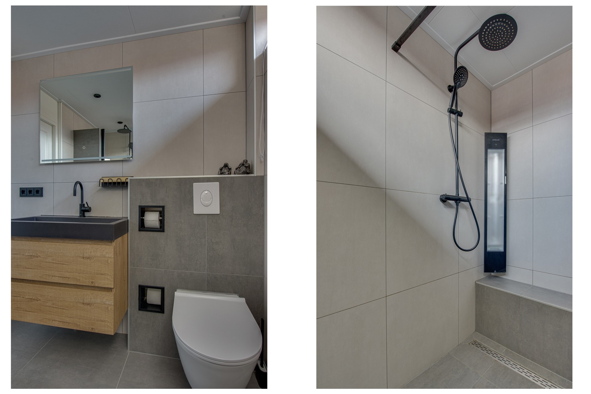 Achter de mancave bevindt zich bovendien een praktische berging met twee openslaande deuren, wat zorgt voor extra comfort en gebruiksgemak.