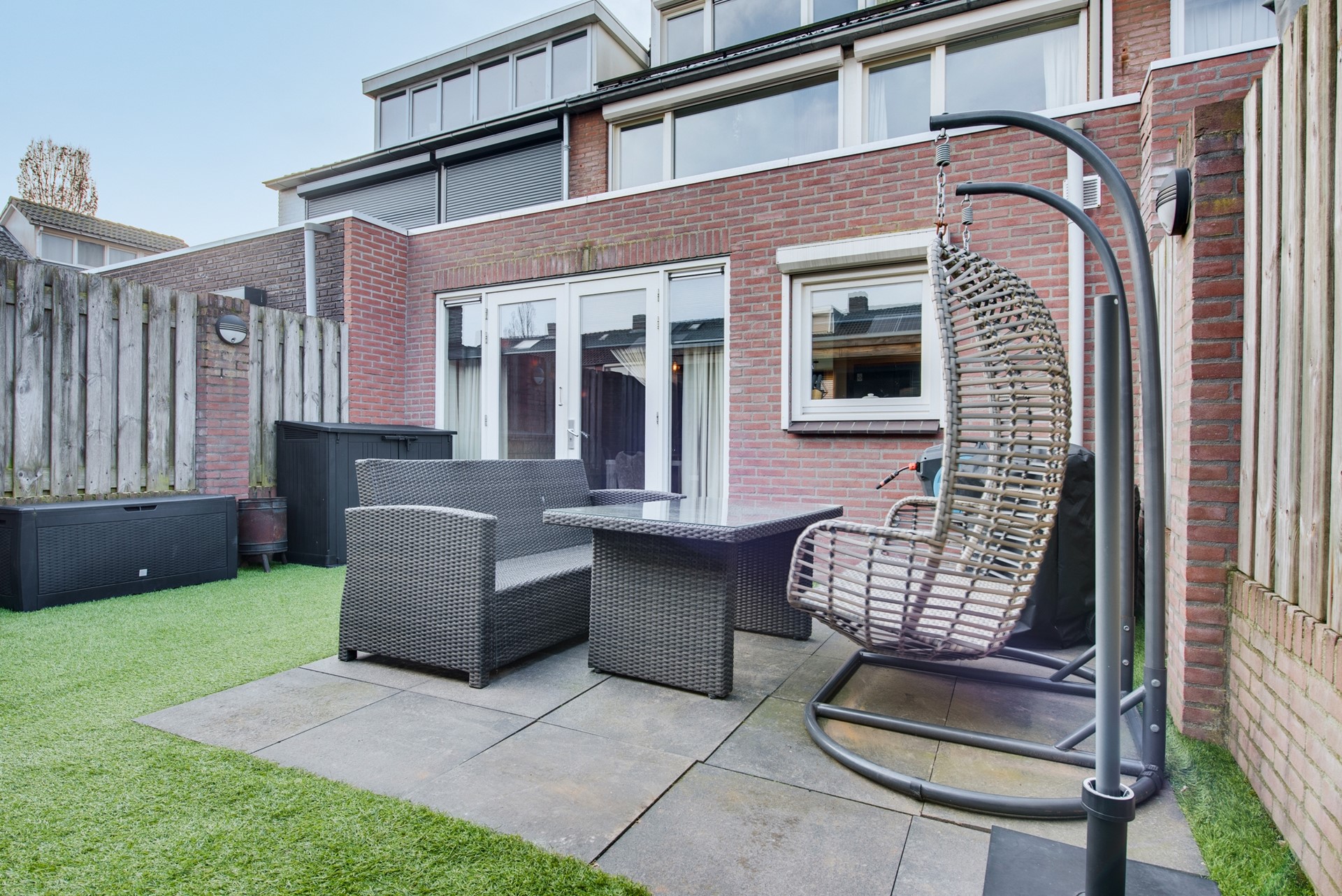 Kortom: een moderne en veelzijdige tuin die rust, comfort en functionaliteit perfect combineert en voelt als een volwaardige verlenging van de woonruimte.