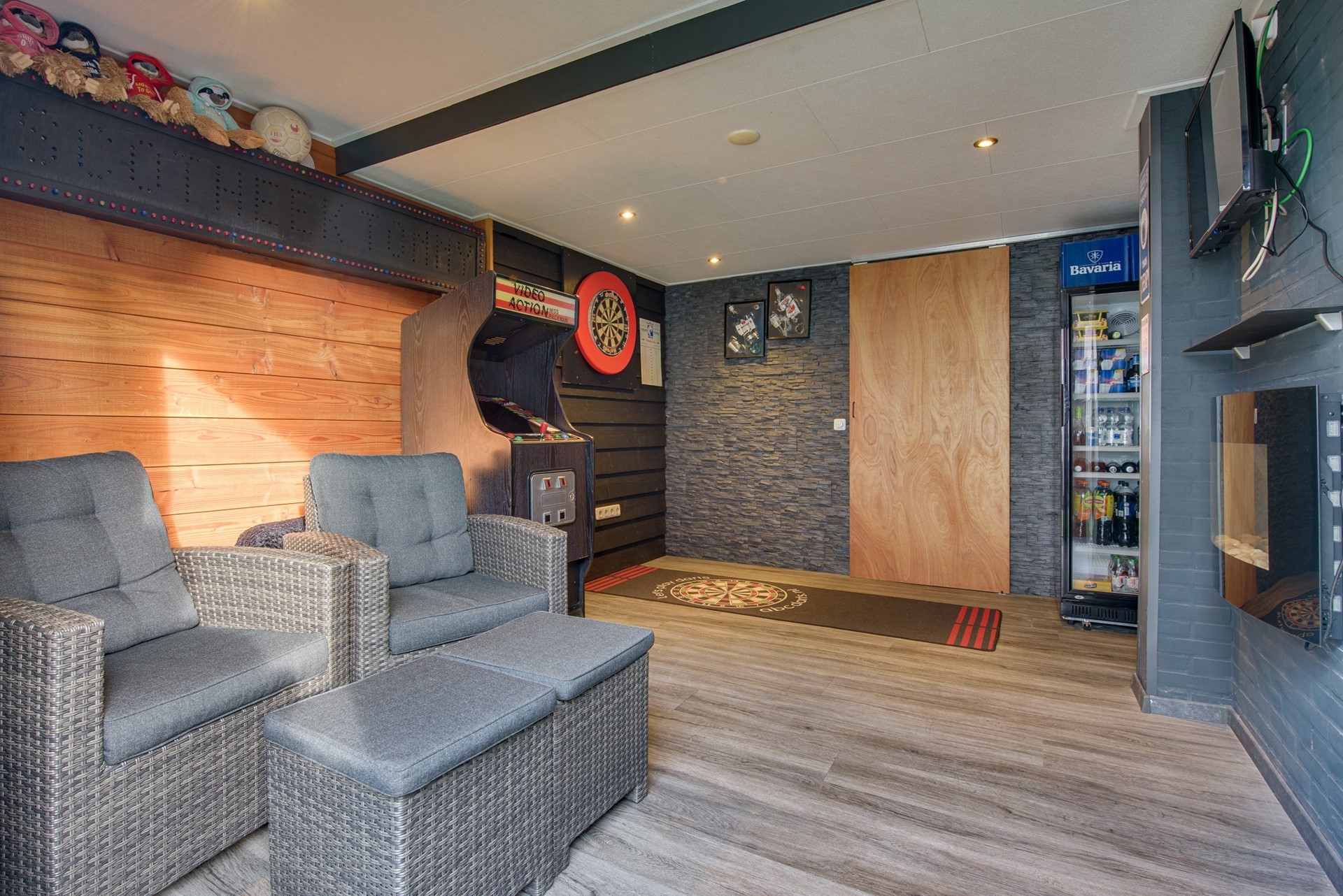 De tuin biedt volop ruimte om te ontspannen, te loungen of gezellig met familie en vrienden te tafelen. Achter in de tuin bevindt zich een prachtige hobbyruimte/mancave, compleet met eigen toilet. Dankzij de glazen wand, die gedeeltelijk opengezet kan worden, is deze ruimte flexibel te gebruiken en ideaal als overdekt terras.